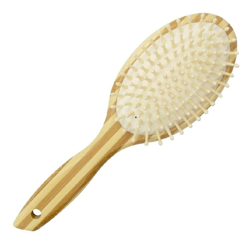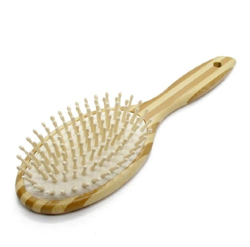 Cepillo de pelo oval, el material del mango, cuerpo son de bamboo y las cerdas de madera , marca Jessamy , disminuye el frizz y estimula el crecimiento , es comodo, practico higienico y su diseño es muy estetico. Sus medidas son 23 cm de alto x 7 cm de ancho