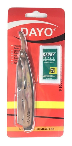 Navajin peluqueria barbero, Marca Dayo. De metal C/5, viene con 5 repuestos. Su forma es plegable, el material de la cuchilla es acero inoxidable , la longitud es de 4 cm